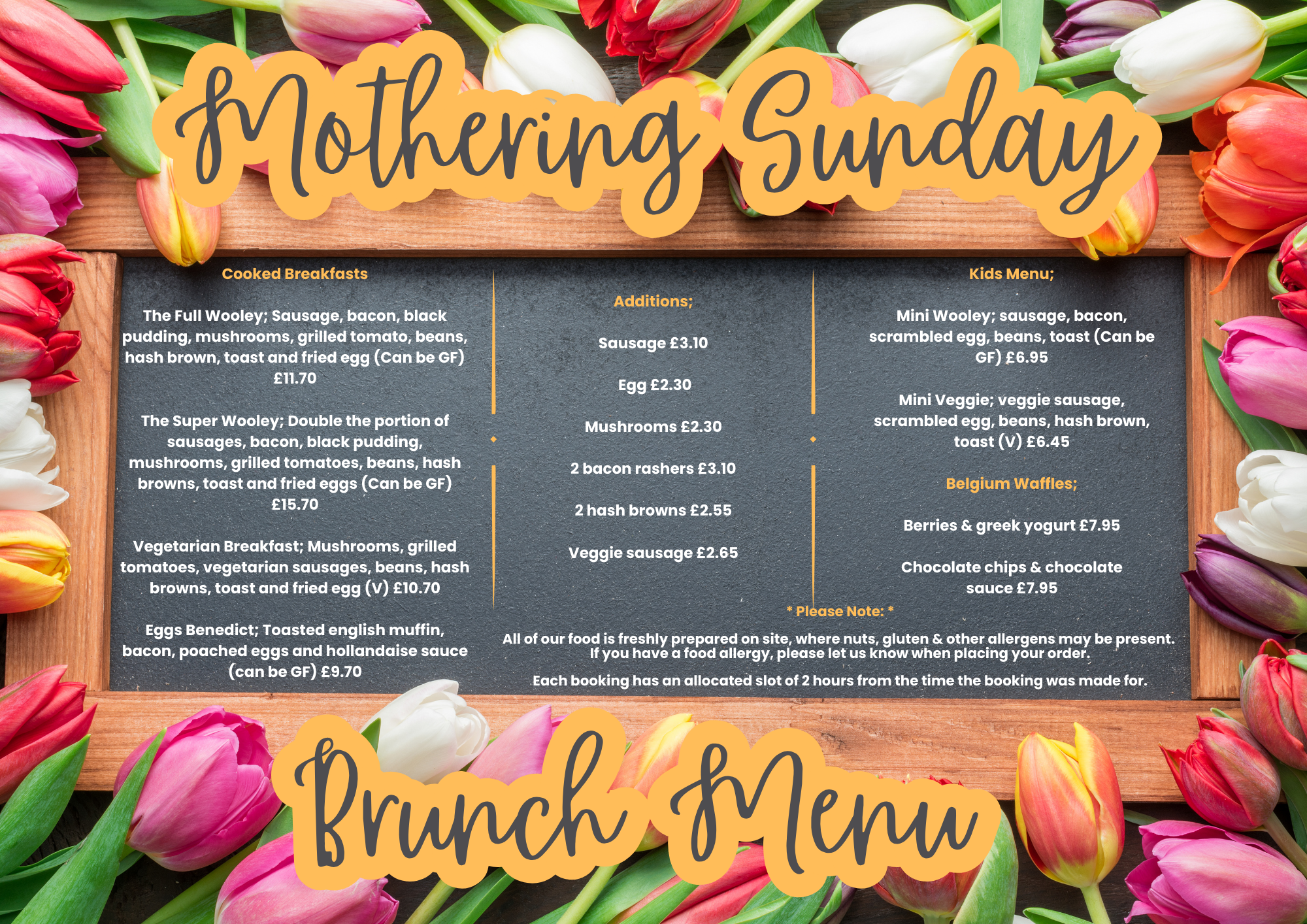 Will be serving this specials menu below alongside the full main menu.